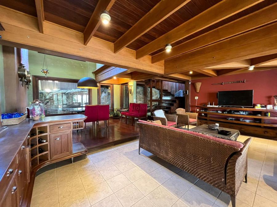 Sala de estar social com lareira em dois aconchegantes ambientes, com acesso à uma linda cozinha integrada